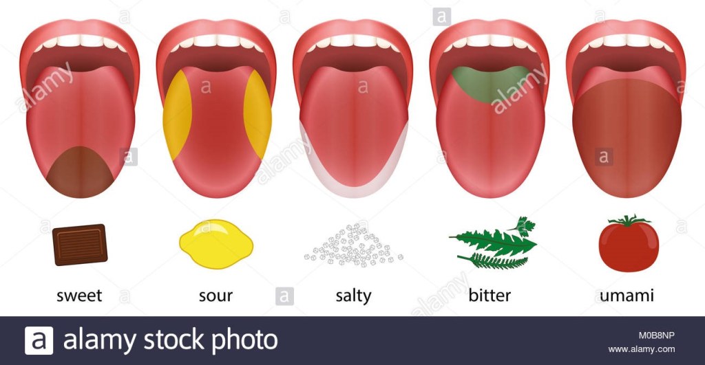 Our sense of taste is a chemical sense. Our few primary taste buds are: sour, sweet, bitter, salty, fat and umami (meat or savoury foods. Umami is believed to arise from the taste receptors of mono-sodium glutamate, which is usually naturally present in many foods, itis higher in fermented foods, and is added to other foods as well as some crisps, and Chinese food). Any other flavours that we taste is from the combination of our primary food taste.